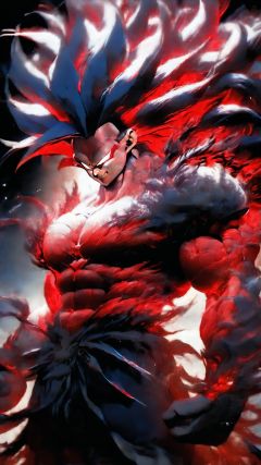 Concept Super Saiyan, cold, handsome, invincible, super long hair (Red Art) (Advanced Color Art) (Intricate Detail) Concept Red supernatural energy spreads around him, a muscular and muscular Super Saiyan stands There, his muscles are like solid rocks, reflecting his powerful fighting ability, dark background