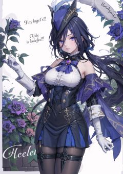 absurdres, absolutely resolution, incredibly absurdres, highres, ultra detailed, official art, unity 8k wallpaper, Kinetic Typography BREAK (1girl, solo:1.4), beautiful and shiny skin, coquettish skin, dynamic poses, dynamic angle, close-up, cowboy shot BREAK (standding, beautiful blue eyes:1.2) BREAK (hat, keluo, kl suits, gloves, pantyhose, white gloves, skirt, boots, breasts, purple eyes,) BREAK (off shoulder, bare shoulders, bare arms:1.2) BREAK (flower, rose, garden, petal:1.2) BREAK (white theme, english text, border:1.6) BREAK nice hands, perfect hands,