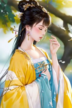(8k, RAW photo, best quality, masterpiece:1.2),(super realistic, photo-realistic:1.3), ultra-detailed, extremely detailed cg 8k wallpaper,hatching (texture),skin gloss,light persona,(crystalstexture skin:1.2), (extremely delicate and beautiful),1girl, long hair, 1boy, bird, hair ornament, black hair, tree, chinese clothes, long sleeves, jewelry, hair bun, wide sleeves, branch, closed eyes, earrings, bare tree, tassel, hair flower, hanfu, <lora:1017gf-000018:0.8>