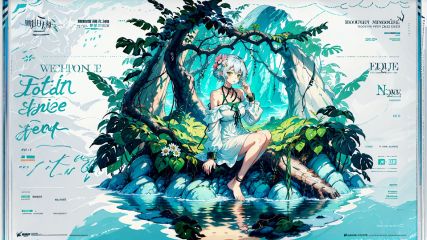 huge filesize,wallpaper,artbook,Tyndall effect,moody lighting,Cinematic Lighting,light leaks,rim light,Volumetric Lighting,background light,available light,//,1girl,flower,solo,pointy ears,long hair,hair ornament,dress,hair flower,looking at viewer,sitting,tree,barefoot,bangs,white hair,full body,white flower,braid,bare shoulders,wrist cuffs,plant,green eyes,white dress,water,outdoors,elf,closed mouth,blush,very long hair,jewelry,bare legs,see-through,reflection,white background,//,<lora:zhouyoutupV2-000052:0.5>,
