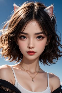 High detail, 8k resolution, ultra-high resolution, best picture quality, domineering president, lipstick, love pupil, peerless beauty, loose curly tea brown hair, curly hair, smooth hair, collarbone, delicate necklace, rich and beautiful makeup, delicate and perfect facial features, gem-like big eyes, (eye details, long eyelashes, big and round eyes) blush, smile, long hair and waist curly hair, BREAK, the upper body is light green with a shoulder embroidered jacket, dancing in shorts, white stockings on legs, thin legs, full body photos, beautiful details of the sky,BREAK, beautiful scenery, close to the viewer, dynamic angle, extreme picture quality, highest precision, accurate and perfect human body structure, real and super realistic, Sky Fantasy,(Norsk skogkatt\(cat\):1.3)