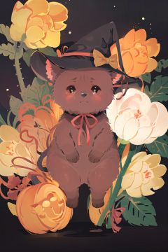 NYCuteHalloween, flower, rose, red flower, no humans, hat, red rose, ribbon, witch hat, black background, red ribbon, black headwear, neck ribbon, animal, plant, animalization, looking at viewer, tears, crying