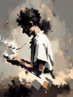 (best quality,masterpiece,fine detailed,),<lora:CJ simple painting:0.9>,1 boy,smokeing,, (best quality, high quality, masterpiece,),