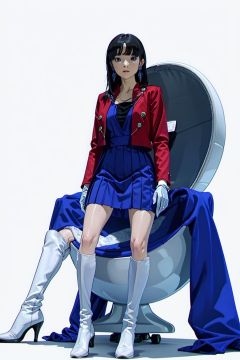 (masterpiece:1.3), (the best quality:1.2), (super fine illustrations:1.2), (Masterpiece), high quality, high detail,((white background:1.2)), looking at viewer, (SOLO:1.4),outline,,simple background,collarbone,ornament, high heels, jacket, dress, blue dress, kneehighs,earrings,chain-link,jewelry,blue jacket,blue coat,uniform,white footwear,necklace,boots,skirt,white gloves