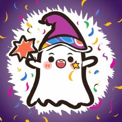 tx-hd, hat, smile, confetti, open mouth, wand, no humans, white background, star \(symbol\), simple background, solo