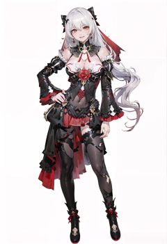 8k, best quality, masterpiece, (ultra-detailed:1.1), (high detailed skin), (full body:1.2), white background, standing, looking at viewer, solo, hand on hip, (laughing, crazy laugh,:1.2), <lora:shiyue2-v100:0.8:lbw=OUTALL>, shiyue, (red Wedding Veil:1.1), red eyes, breasts, long hair, cleavage, black dress, white hair, thighhighs, hair ornament, bare shoulders, detached sleeves, jewelry, earrings, (white background, simple background,:1.2), <lora:EnvyBetterHands LoCon_beta2 辅助:0.55>, ( good hands, nice hands:0.5), (beautiful_face), ((intricate_detail)), clear face, ((finely_detailed)), fine_fabric_emphasis, ((glossy)), full_shot,