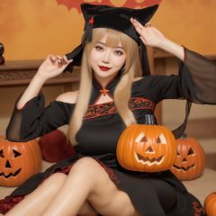 HDR,UHD,8K, best quality, masterpiece, absurdres,extremely detailed, BREAKhalloweencoser, wan1, 1girl, solo, hat, blood, looking at viewer, bat \(animal\), long hair, blood on face, fingernails, red lips, chinese clothes, red nails, brown hair, nail polish, sitting, lips, animal print, smile, black headwear, halloween, shadow, makeup, long sleeves, chinese text, grey eyes, bare shoulders, ofuda, jiangshi, upper body, straight-on, qing guanmao, blurry, mole, blonde hair, orange background, blood on handsBREAKPumpkin, pumpkin lantern,BREAK<lora:halloweencoser-000008:1>