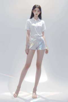 1girl, full body, polo shirt, iridescence, jewelry, white background, long hair,<lora:liuli3beta:1.2>