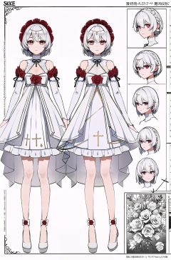 multiple views, pencil sketch, (sketch:1.25), shy, best quality, graphite \\(medium\\), ske, gradient, rainbow, note, Line draft, highres, absurdres, (ultra-detailed:1.1), (illustration:1.1), (infographic:1.2), pajamas, (all clothes configuration:1.15), (solo), perfectly drawn hands, standing, cohesive background, paper, action, (character design:1.1), <lora:huajia-v100:0.8:lbw=OUTALL>, huajia, 1girl, theresa apocalypse, dress, red flower, white hair, white dress, flower, red rose, red eyes, wedding dress, bangs, bare shoulders, hair between eyes, hair ornament, bridal veil, <lora:Anime Lineart ,Manga-like (线稿,線画,マンガ風,漫画风) Style:0.4>, <lora:Sketchy - Style:0.2>, (beautiful_face), ((intricate_detail)), (revealing clothes:1.2), clear face, ((finely_detailed)), fine_fabric_emphasis, ((glossy)),