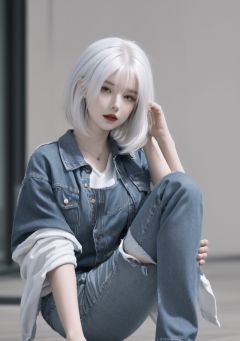 <lora:LvZP_20231018084113-000001:0.6>,1girl,8k,white hair,jeans,