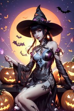1girl,((lots of galaxy+halloween color feathers):1.3), orange tone color, cute face, sitting, Hair pumpkin, decorative art, pumpkin, xmv-hd, wsj-hd, xwhd