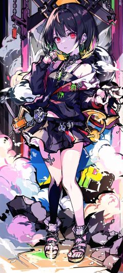 masterpiece, best quality, masterpiece, best quality, masterpiece,{{best quality}},highly detailed,ultra-detailed,illustration,Depth of field,cold,{solo},{{{Dark prison}}},{{{1girl}}},black short_hair,bob haircut,{{long_sleeves}},off_shoulder,detailed eyes,{{Hematic red eyes}},{{tareme}},{{crazy}},expressionless,{{prisoner's garb}},Handcuffs,Chain,Hammer,miniskirt,{metal jewelry},{{{heavy metal}}},Foot cuffs,cross-laced_footwear,choker,{{Monster Energy}},{Demon Array},{{{666}}},[Dry ice fog]