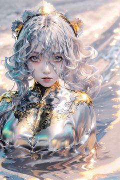 masterpiece, best quality, best quality, Amazing, beautiful detailed eyes,((1girl)), finely detailed, Depth of field, extremely detailed CG unity 8k wallpaper, full body,(other Minato aqua), (((a girl wears Clothes with a silver texture))),((Extremely gorgeous metal style)),((Metal crown with ornate stripes)),((((Various metals background)))),Sputtered molten iron,(floating hair),((Hair like melted metal)),(((detailed face))), (((detailed eyes))),(((Clothes made of silver))),(((Clothes with gold lace))),((full body)),((((flowing gold and silver)))),(((((everything flowing and melt))))),(((((flowing iron))))),(((((flowing silver))))),((((lace flowing and melt)))),<lora:kawj_V1:0.9>