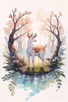 <lora:水彩_v1:1> watercolor, white background, minimalism, a cute deer, in the woods, plants, flowers, lovely, sweet atmosphere, soft color rendering,
