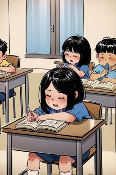 <lora:yingye_20231021100316:1>,yingye,sleeping,multiple boys,curtains,desk,shirt,indoors,window,closed eyes,black hair,1girl,dress,short hair,sitting,book,4boys,3boys,blue shirt,smile,yellow dress,child,eraser,short sleeves,pencil,chair,blush,classroom,white shirt,drooling,school desk,bangs,socks,pencil case,heart,table,notebook,open book,