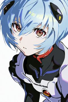 by yoneyama mai, best quality, masterpiece, detailed, aesthetic, 1girl, solo, blue hair, ayanami rei, upper body, white background