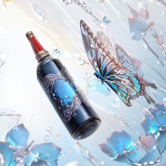 masterpiece, best quality,guochao\(style\), butterfly, bug, blue butterfly, flower, blue flower, no humans, still life, blurry, water drop, white flower, depth of field, glint, bottle, liquid, glass, water, sparkle, chain, light particles <lora:guochao-000006:0.7>