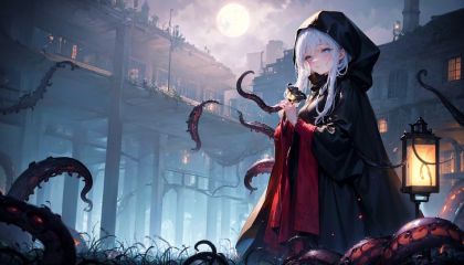 (blurry, depth of field, perspective,blurry foreground:1.35),(masterpiece:1.15),(extremely detailed CG unity 8k wallpaper:1.05),(finely detail:1.1),(ultra-detailed:1.1),(exquisite illustrations:1.05),(best quality:1.05),(highres:1.05),original,(an extremely delicate and beautiful:1.05),cinematic lighting,bloom effect,dramatic shadows,(dark:1.05),(Dark background:1.15),film grain,post-impressionism,(layering:1.05),(female focus:1.25),(((1 girl:1.25):1.25):1.05),(very long silky hair:1.05),(medium breasts:1.05),Wearing a black Hooded cape,(holding:1.25),(Lantern in hand:1.15),(The wind blows the cloak),Out of the fog,finely detail,masterpiece,(Surrounded by ashes),mist,(from side),(long hair:1.05),(beautiful detailed eyes and face:1.1),Indifferent face,(beautiful detailed eyes),floating hair,soft focus,Chuckle,(At Night:1.05),(very small and dimly moon:1.2),(very thick fog:1.15),mist,dusky,(several tentacles surround the edges of screen:1.15),(several tentacles surround the edges of frame:1.15),((several tentacles in background:1.25):1.15),(stacked deserted buildings:1.1),oddish,shabby wooden buildings,(outdoors:1.15),cloudy sky,,cthulhu fiction,sense of strange,cold light,(waving tentacles:1.15),(pale skin:1.2),
