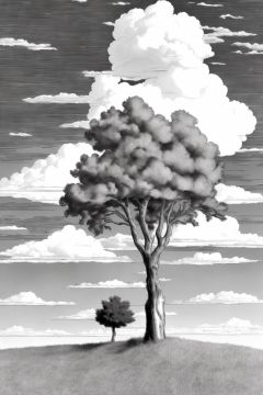 banhua, cloud, no humans, grass, sky, outdoors, scenery, cloudy sky, tree,  <lyco:banhua-000003:1.0>