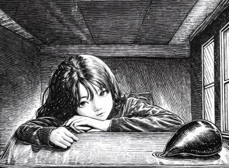 banhua, a girl, indoor,mansion,Indoor, sofa, window, table, floor,   <lyco:banhua-000003:1.0>,best quality,masterpiece, Monochromatic printmaking,