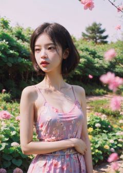 yanzhi, 1girl,beautiful,  Pink dress, Pink  petals, Pink flowers, glow,antastical Atmosphere, Calming Palette, Tranquil Mood,Outdoor,glow,antastical Atmosphere, Calming Palette, Tranquil Mood,best quality, masterpiece, photographic,  <lora:中式审美,网红脸系列_V1.0:0.4> <lora:小清新混血_v1.0:0.0.4> <lora:少女感脸型_v2.0:0.7>