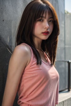 masterpiece, highest quality, extreme quality, Magenta clothes, street, upper body , babebiiie, glamour shot, seductive face