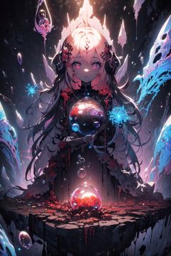 (absurdres, highres, ultra detailed),1girl,solo,extremely detailed eyes,(official art, beautiful and aesthetic:1.2),(rot,bacteria,Bubbles,mysterious,dark art,erosion,fractal art :1.3),colorful,horror,highest detailed,<lora:月影蔷薇:1>,