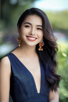(Masterpiece, best quality, ultra realistic,32k, RAW photo, detail skin, 8k uhd, dslr, high quality, film grain:1.5),1girl, long hair, looking at viewer, smile, black hair, dress, jewelry, standing, flower, earrings, outdoors, blurry, black eyes, blurry background, realistic, 35mm film