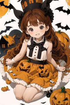Best quality,16k,cg,pumpkin,White background,bat,castle,Pumpkin buns,hat