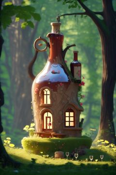 3dfz, no humans, bottle, window, flower, tree, grass, door, outdoors, nature, plant, scenery, forest, day, blurry, wine bottle, mushroom,tilt-shift,best quality,masterpiece,realistic,HDR,UHD,8K,