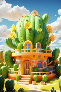 3dfz, cactus, cloud, sky, outdoors, day, no humans, blue sky, plant, window, cloudy sky,tilt-shift,best quality,masterpiece,realistic,HDR,UHD,8K,