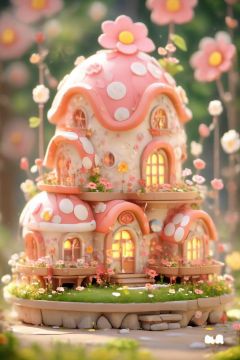 3dfz, no humans, flower, outdoors, window, day, scenery, house, grass, sky, balloon, building, chimney, plant, pink flower, door, bird, blurry,tilt-shift,best quality,masterpiece,realistic,HDR,UHD,8K,