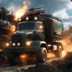 <lora:DieselPunkAI:1> DieselPunkAI truck  , (Highly detailed, amazing military setting), (Shiny Impressive lighting), (Colorful, Ultra stylized, High quality, Highly detailed, Sharp, 8K UHD), (trending on artstation)