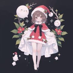 masterpiece, 1girl,wallpaper, brown hair, brown eyes, christmas hat, (full body:1.1), colorful,