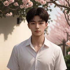 masterpiece,1 Man,Handsome,Look at me,Brown eyes,Short hair,Oil head,White shirt,22 years old,Outdoor,Garden,Peach tree,Flying petals,textured skin,super detail,best quality,<lora:ManDick1.5_V1-000005:0.3>,