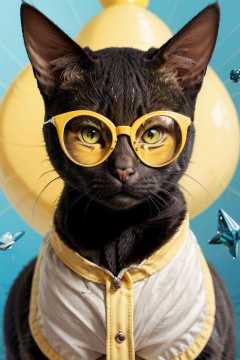 (yellow-glasses:1.2),a photoof a close up shot of a cat wear a glasses,Different dimensional space backdrop,animate,<lora:Meganekko:0.9:lbw=OUTD>,