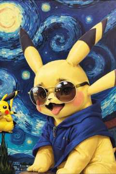 (yellow-glasses),(pikachu:1.2),closeup,starry night backdrop heavy brush strokes,by van Gogh,<lora:Meganekko:0.9:lbw=OUTD>,