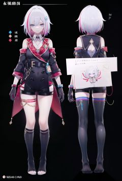 multiple views, pencil sketch, (sketch:1.25), (little girl,small breasts,), ((no shoes)), shy, best quality, graphite \\(medium\\), ske, gradient, rainbow, note, Line draft, highres, absurdres, (ultra-detailed:1.1), (illustration:1.1), (infographic:1.2), pajamas, (all clothes configuration:1.15), (solo), perfectly drawn hands, standing, cohesive background, paper, action, (character design:1.1), <lora:tuopa-v100:0.75:lbw=OUTALL>, tuopa, black gloves, black footwear, multicolored hair, shorts, streaked hair, blue eyes, single thigh strap, red and silver hair,