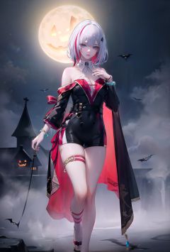 (8k, RAW photo, best quality, masterpiece:1.1), (realistic, photo-realistic:1.37), ultra-detailed, (high detailed skin:1.2), 8k uhd, dslr, soft lighting, high quality, film grain, Fujifilm XT3, professional lighting, photon mapping, radiosity, physically-based rendering photo of 1girl, cosplay, small chest, little girl, small breasts, full body, faye_valentine, two-tone bikini, o-ring bikini, bracelet, star_\(symbol\), (spooky,gothic, Halloween:1.2 ), (eerie atmosphere), misty graveyard scene, jack-o'-lanterns, full moon night, bats silhouettes, crows, scary makeup, dramatic lighting, fantasy, (horror:0.9), ((seductive:1.2)), surrounded by magic symbols and ritual designs on the ground., <lora:tuopa-v100:0.75:lbw=OUTALL>, tuopa, multicolored hair, shorts, streaked hair, blue eyes, single thigh strap, red and silver hair, <lora:EnvyBetterHands LoCon_beta2 辅助:0.55>, ( good hands, nice hands:0.5), (beautiful_face), ((intricate_detail)), (revealing clothes:1.2), clear face, ((finely_detailed)), fine_fabric_emphasis, ((glossy)),