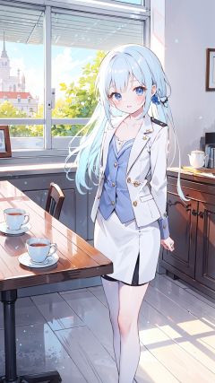 dre::0, tan fully fashioned stockings:0.9, silver suit jacket, silver white pencil skirt,