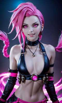 jinx (league of legends),pink eyes,<lora:MIAOKA_JINX_1.0_SDXL-000002:0.8>,