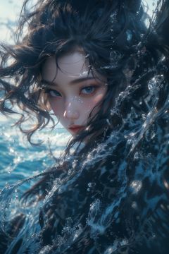 masterpiece,best quality,ultra-detailed,1girl,water,solo,waves,white clothes,<lora:水元素:0.6>,upper body,
