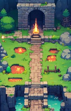 mw_pixels, no humans, grass, cave, door, scenery, molten rock, water, stairs, outdoors<lora:MW_Pixels_v1:0.8>