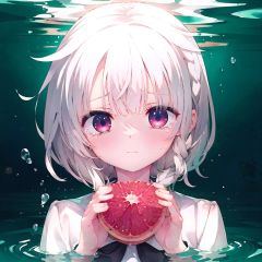 (streaming tears), sad, (grapefruit), (grapefruit), (grapefruit), looking at viewer, both hands on own cheek,White shirt , (white hair, short hair, braid,bangs:1.2), (glowing eyes), ripples, dark water, In water,