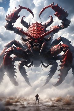 Hyperrealistic art BJ_Sacred_beast,Scorpion,solo,open_mouth,red_eyes,horns,sky,teeth,cloud,no_humans,cloudy_sky,monster,giant,cinematic lighting,strong contrast,high level of detail,Best quality,masterpiece,Extremely high-resolution details,photographic,realism pushed to extreme,fine texture,incredibly lifelike,<lora:SDXL_Sacred_beast_V2.3:0.6>, . Extremely high-resolution details, photographic, realism pushed to extreme, fine texture, incredibly lifelike