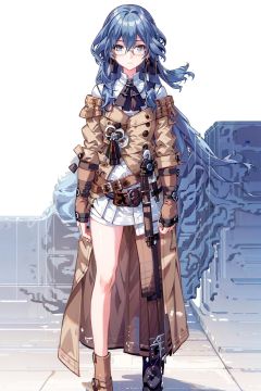 (masterpiece:1.3),(the best quality:1.2),(super fine illustrations:1.2),(Masterpiece),high quality,high detail,(white background:1.2),looking at viewer,(SOLO:1.4),outline,simple background,, fu hua,glasses,brown_footwear,boots,blue_eyes,
