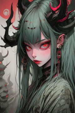 guaidan,1 girl,8k,demon horns, blodding,sharp fingernails