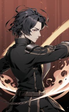 hires,8k,effect,high detail,effect background,fighting1boy,black hair,(unlight:1.3),ink art,black uniform,fire blade<lora:GoodHands-vanilla:1.2> <lora:Unlight:1>