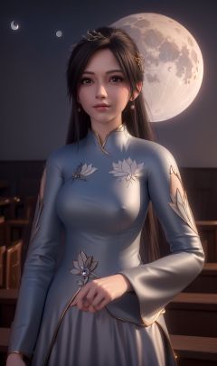 masterpiece,(best quality),(3d)official art, extremely detailed cg 8k wallpaper,((crystalstexture skin)), (extremely delicate and beautiful),highly detailed,1girl,solo,long hair,headwear,(standing),(black hair),(closed mouth),(looking at the audience:1.3),(Facing the camera:1.3),dress,(Outdoor, night,moon),((looking_at_viewer)), (medium breasts), (upper body), <lora:hipoly3DModelLora_v10:0.3> <lora:枫岫-你真是个天才-青月01:0.7>