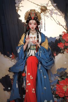 masterpiece,best quality,8K,HDR,exquisite details,<lora:Chinese Gongbi painting-000004:0.8>,,mn,1girl,solo,umbrella,flower,long hair,hair ornament,black hair,snow,hair flower,holding umbrella,holding,braid,tree,floral print,oil-paper umbrella,outdoors,looking at viewer,winter,snowing,white flower,long sleeves,facial mark,wide sleeves,standing,tassel,makeup,sash,forehead mark,bare tree,chinese clothes,closed mouth,blush,